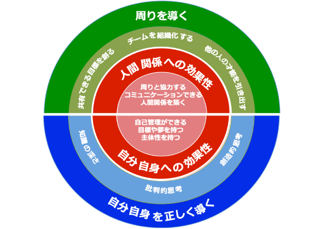 「7つの習慣」を活用し、21世紀を生き抜くために自ら考えて行動できる「自己リーダーシップ」を開発し、その上で他者と協働できる「人格」を育むプログラムです。